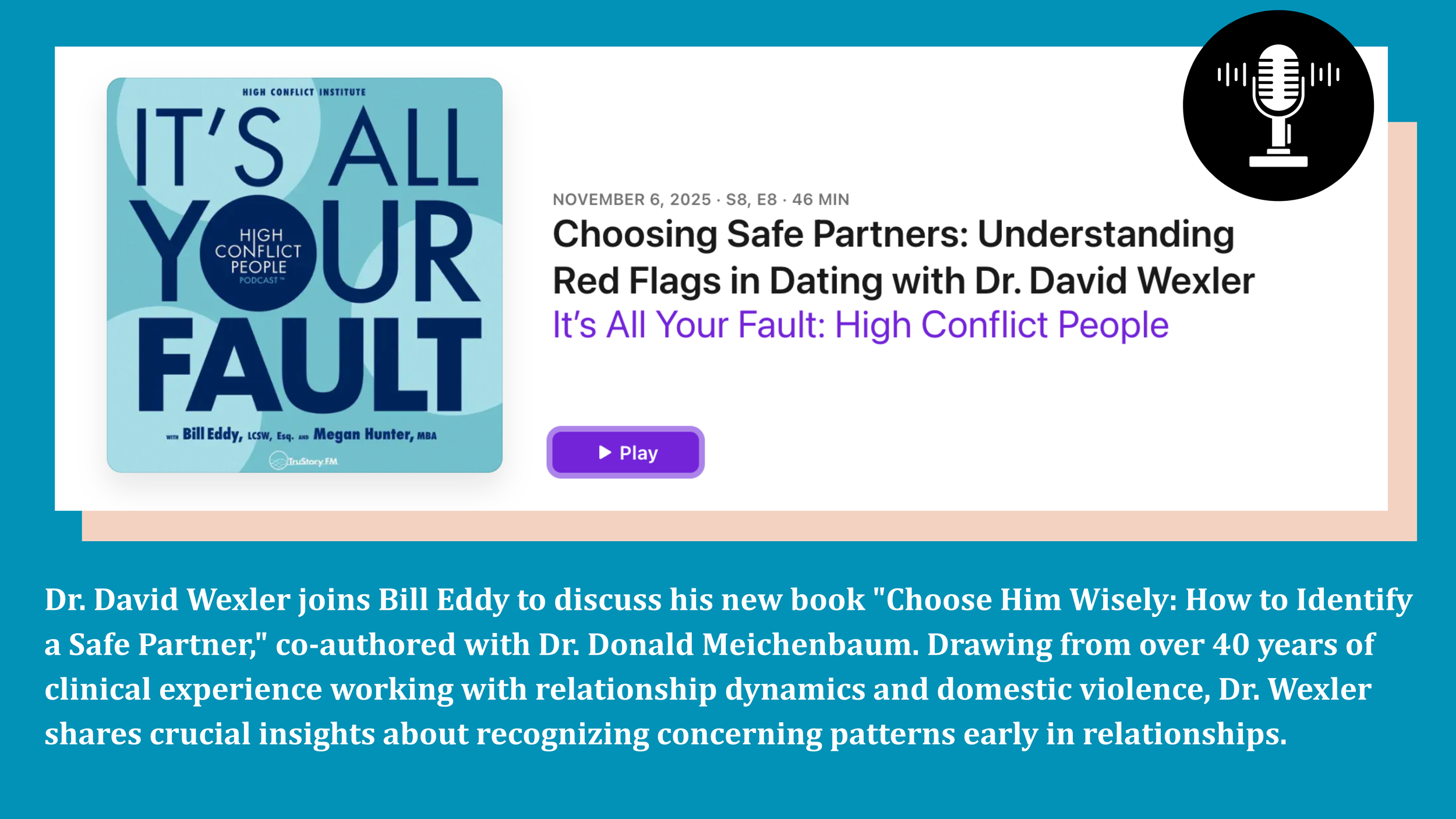 CHOOSE HIM WISELY: Research-Based Guidelines to Help Women Stay Clear of Dangerous Relationships Presented by David B. Wexler, PhD and special guest Donald Meichenbaum, PhD